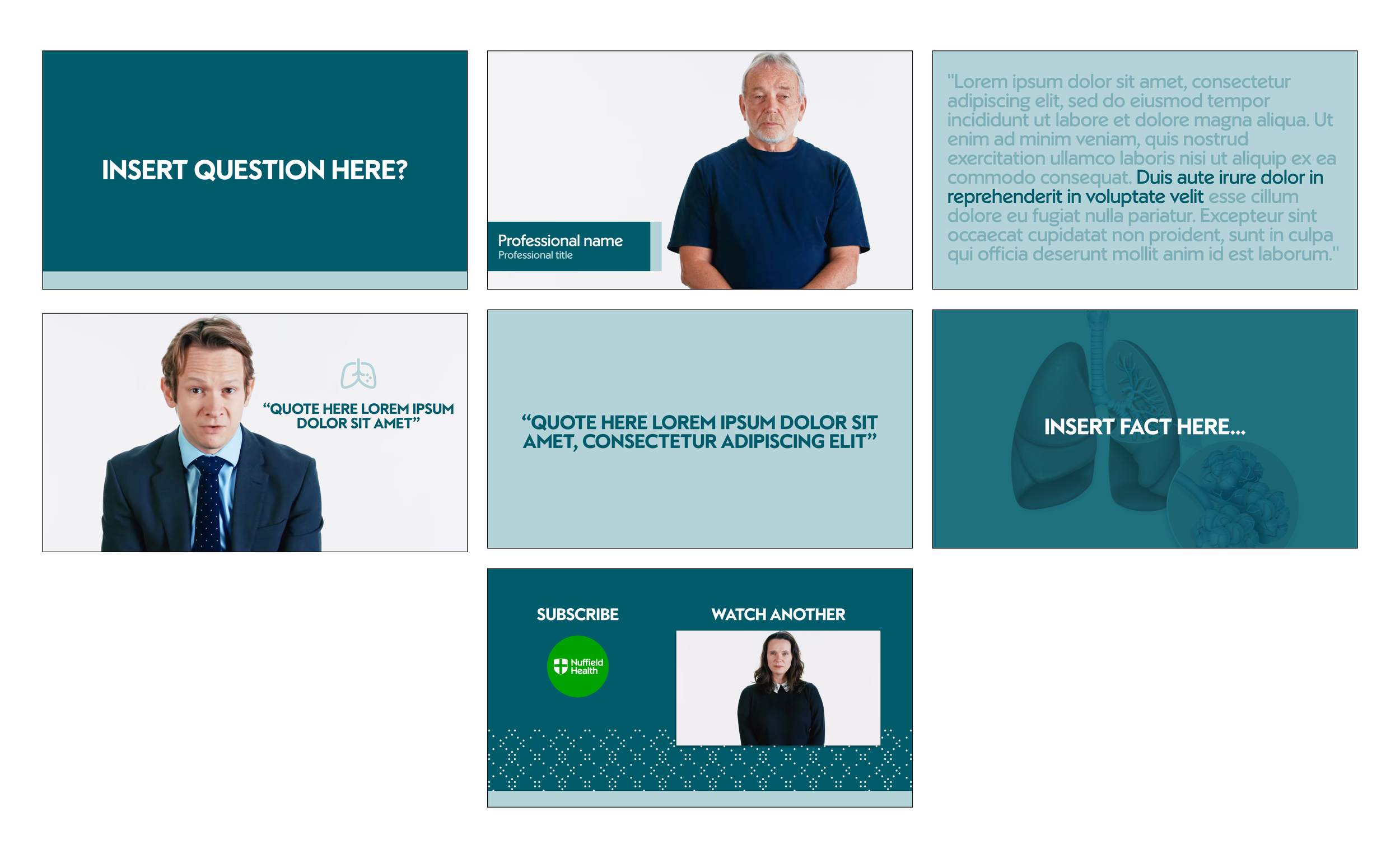 Nuffield Health produces a growing volume of hospital-based video content for YouTube, featuring clinicians, patient information, and service explainers. The content needed a clear, recognisable visual identity that felt trustworthy, calm, and clinically appropriate, while still being engaging on a consumer platform.