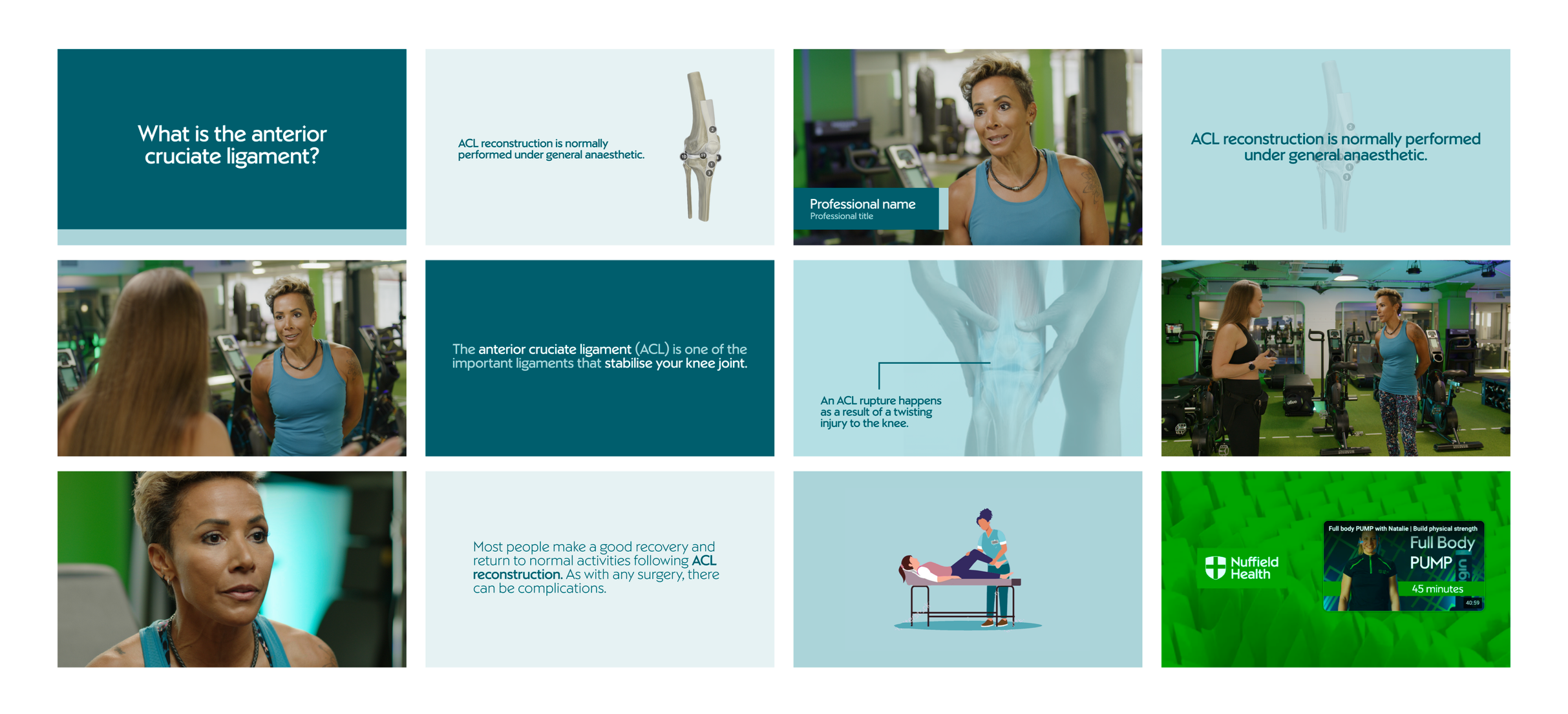 Ultimately, while not all explored design ideas were used in the final videos, the design vision I developed was integral to creating a clear, cohesive visual system for Nuffield Health’s hospital content.